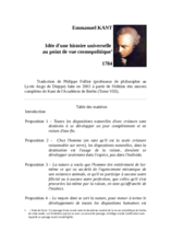 Kant - Idée d'une histoire universelle du point de vue cosmopolitique - 1784